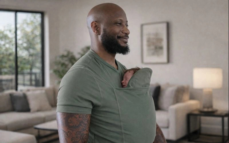 the dad t-shirt. Designed to hold your baby close, hands-free, creating instant calm and a deeper connection every moment, with ultra-soft, breathable fabric and a near-custom fit.